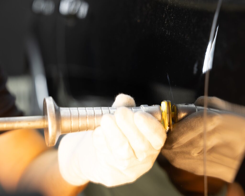 Bei unserer umweltschonenden Behandlungsmethode werden die Dellen hauptsächlich von der Unterseite des Blechs mit speziellem Werkzeug bearbeitet. Hierfür werden Hebel aus z.B. Federstahl eingesetzt und die Dellen damit sanft bearbeitet.